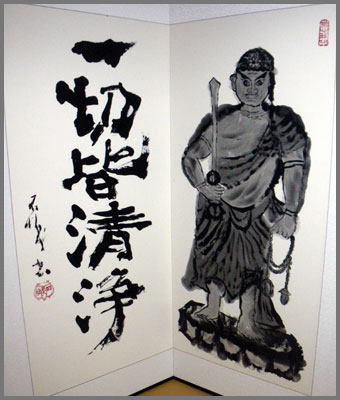 One of the principle attributes of a martial artist is Fudo Shin. This means to have the immovable spirit of Fudo Myo-o, who is one of the protector gods within the popular Japanese Shingon school of Buddhism. At the gates of hell he waits to assist those who have strayed from the path. He assists them with the rope of truth and his sword cuts through delusion to help those in need of enlightenment.
